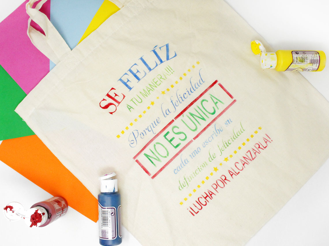 Por último otra propuesta muy original para regalar a papá es la decoración textil. Camisetas, corbatas o accesorios como el que aquí te proponemos: una bolsa para llevar todo lo que necesite papá. Para este regalo tan especial solo necesitaremos el soporte (podemos encontrarlo en Milbby), una plantilla o stencil y pintura especial para textiles. Dibujamos, escribimos mensajes o decoramos con motivos con los que queramos sorprender a papá. Si el peque es muy pequeño para dibujar, podemos probar a dejar marcadas sus huellas de las manos o de los pies. Si los artistas de casa son más mayores que escriban mensajes o plasmen sus dibujos favoritos.