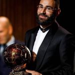 El futbolista del Real Madrid, Balón de Oro 2022 recogió el premio ante la atenta mirada de su hijo pequeño, Ibrahim.