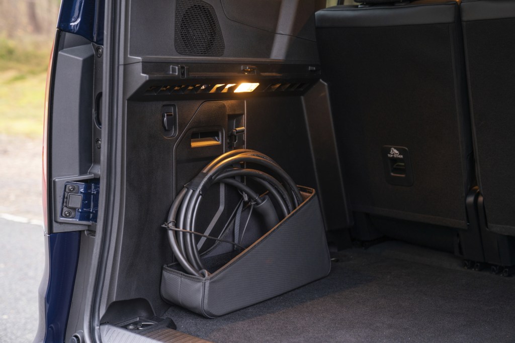 Destacar que un práctico cajón portaobjetos plegable permite guardar los distintos cables (el cable de carga modo 3 y el flexicharger opcional que permite la conexión a una toma de corriente doméstica o Green’up) en el maletero.