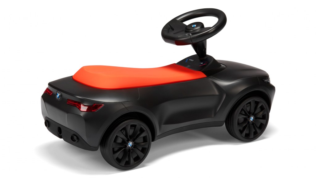 La nueva y deportiva versión del BMW Baby Racer ofrece incluso a nuestros entusiastas más jóvenes el máximo confort con su nuevo y cómodo asiento blando en colores contrastantes, su volante ergonómico de tres radios y sus ruedas silenciosas (neumáticos) fabricadas con materiales reciclados. La bocina integrada en la cabina rediseñada garantiza la seguridad y un camino despejado para los niños de uno a tres años, ya sea en casa o al aire libre. La parte delantera presenta la parrilla en forma de riñón de BMW, el último diseño de la marca, que sigue totalmente el estilo de los modelos de referencia de tamaño completo del BMW Serie 4/i4, el BMW iX y el BMW M3/M4. Y cualquiera que pase cerca del nuevo BMW Baby Racer verá sus luces traseras deportivas.