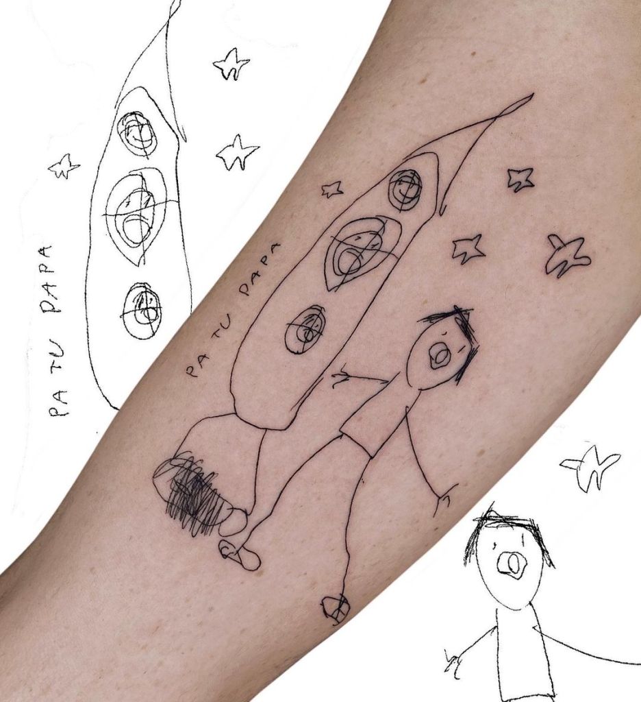 Y, por último, te damos una opción más arriesgada, pero tan personal que nadie en el mundo podrá tener un tatuaje igual: que reproduzcas en tu piel un dibujo de tu hijo o hija. Lo hizo David Beckham con un garabato de su hija pequeña, Harper Seven, y no es el único. El propio Ivan Casabó ha promovido en alguna ocasión este tipo de tatuajes, y su madre lleva un dibujo hecho por él cuando era pequeño.