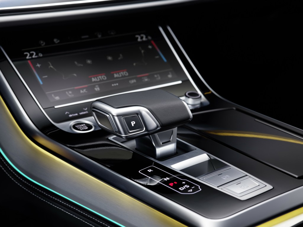 Todos los motores V6 del Audi Q8 se asocian a un cambio tiptronic de ocho velocidades, a la tracción integral permanente quattro y al sistema de hibridación ligera MHEV, que puede lograr una ventaja en el consumo de combustible de hasta 0,5 litros cada 100 kilómetros en condiciones de utilización real. Sus componentes clave son una batería de iones de litio y un alternador de arranque por correa (BAS) que suministra energía al sistema eléctrico principal de 48V. Al decelerar, el BAS recupera hasta 8 kW y alimenta a la batería. Entre 55 y 160 km/h, cuando el conductor levanta el pie del acelerador el Q8 puede circular por inercia con el motor apagado hasta 40 segundos. Tras frenar, el BAS vuelve a arrancar el propulsor de forma rápida y muy cómoda. El sistema start-stop puede activarse a partir de 22 km/h.