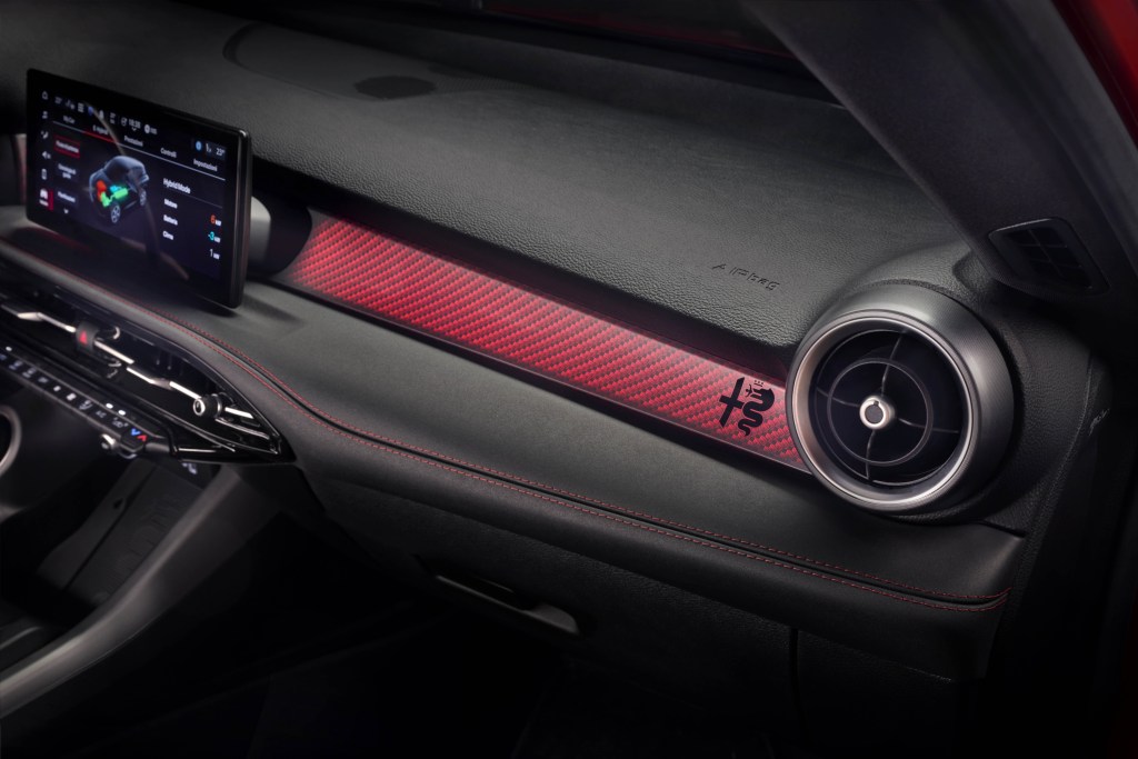 Las mismas características deportivas se pueden encontrar en el interior de los tres modelos Tributo Italiano. En concreto, los nuevos asientos deportivos de cuero negro presentan perforaciones con toques de rojo, y los reposacabezas delanteros están bordados con el nuevo logotipo distintivo de la serie especial. Otras características nuevas incluyen costuras rojas en el tablero, los asientos y los paneles de las puertas. Además, el Tonale Tributo Italiano viene con una nueva fascia de tablero de "diseño de carbono", con el logotipo de Alfa Romeo, iluminación ambiental y placa protectora de aluminio.