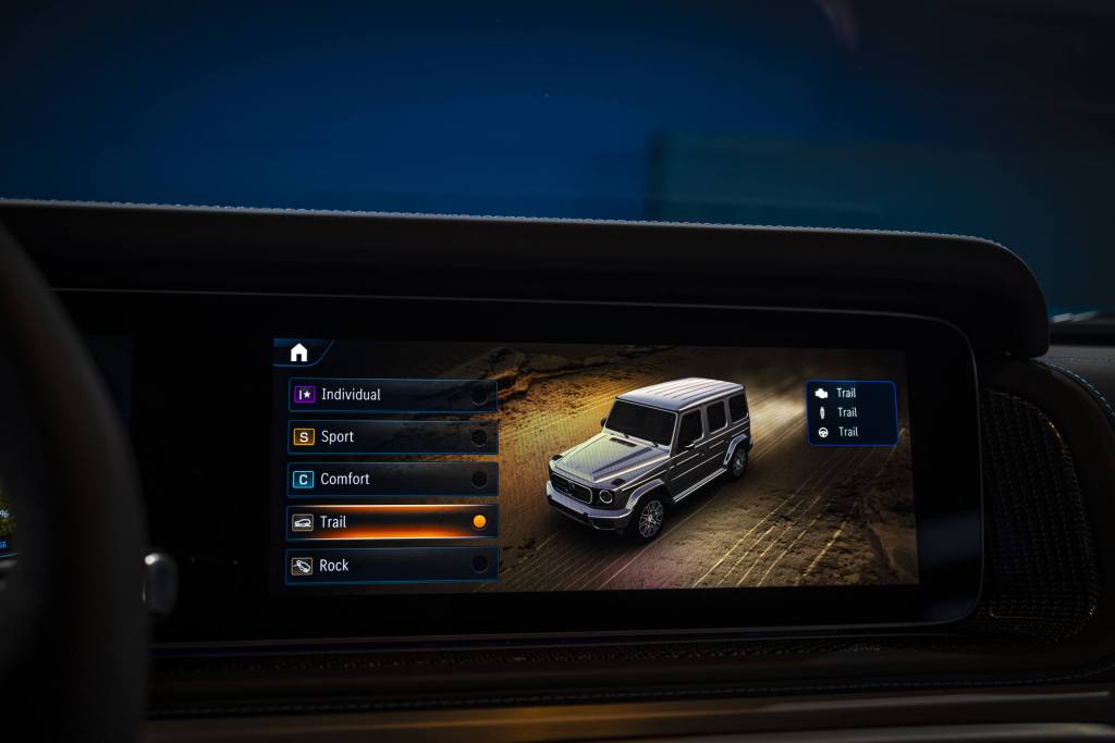 El nuevo Mercedes-Benz G 580 con tecnología EQ está equipado de serie con el sistema de infoentretenimiento MBUX (Mercedes-Benz User Experience), el volante multifunción en napa e iluminación ambiental. Entre los extras opcionales se incluyen KEYLESS-GO, portavasos con regulación de temperatura, el sistema de sonido envolvente Burmester 3D y el "capó transparente" (ambos de serie).