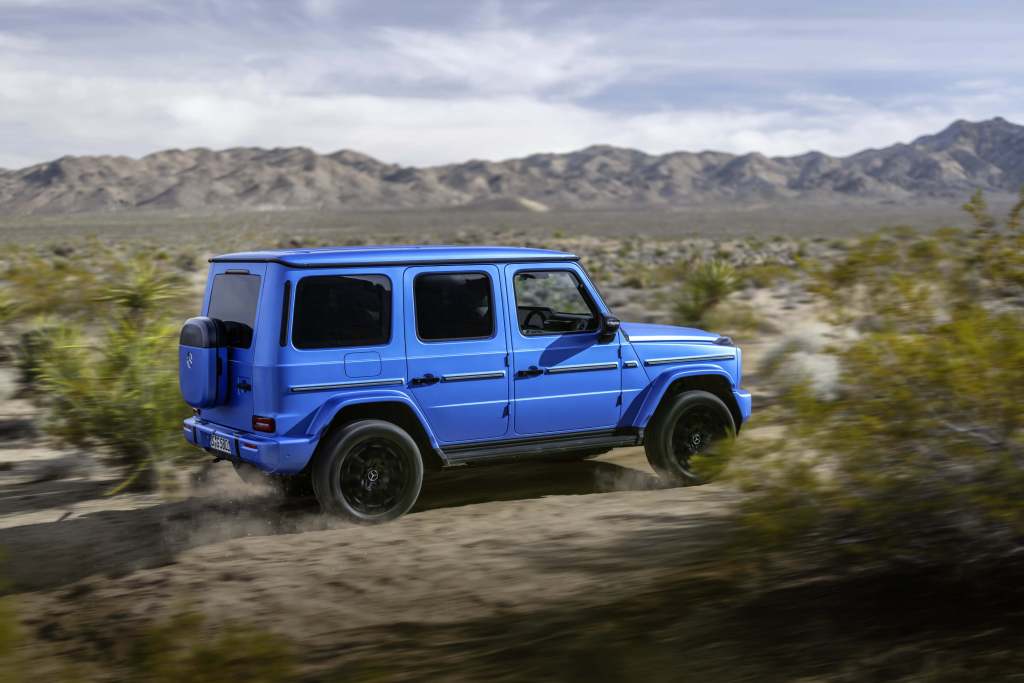 Al igual que las demás variantes, el nuevo Mercedes-Benz G 580 con tecnología EQ presenta una inclinabilidad de hasta el 100% en superficies adecuadas. El vehículo se mantiene estable en pendientes laterales de hasta 35 grados. Con una profundidad máxima de vadeo de 850 milímetros, la Clase G eléctrica supera en 150 milímetros a sus homólogos de propulsión convencional.