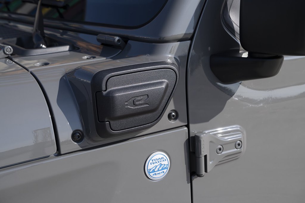 El nuevo Wrangler 4xe híbrido enchufable está disponible en dos niveles de equipamiento (Sahara 4xe y Rubicon 4xe), con dos sistemas 4x4 y llantas de aleación específicas de 43,2 cm (17”) y 45,7 cm (18”).