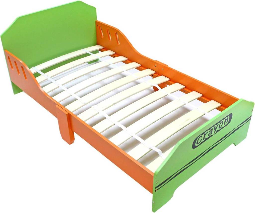 Esta cama para niños resalta por su diseño colorido tonos naranjas y verdes. Está elaborada con madera de calidad de gran resistencia.
