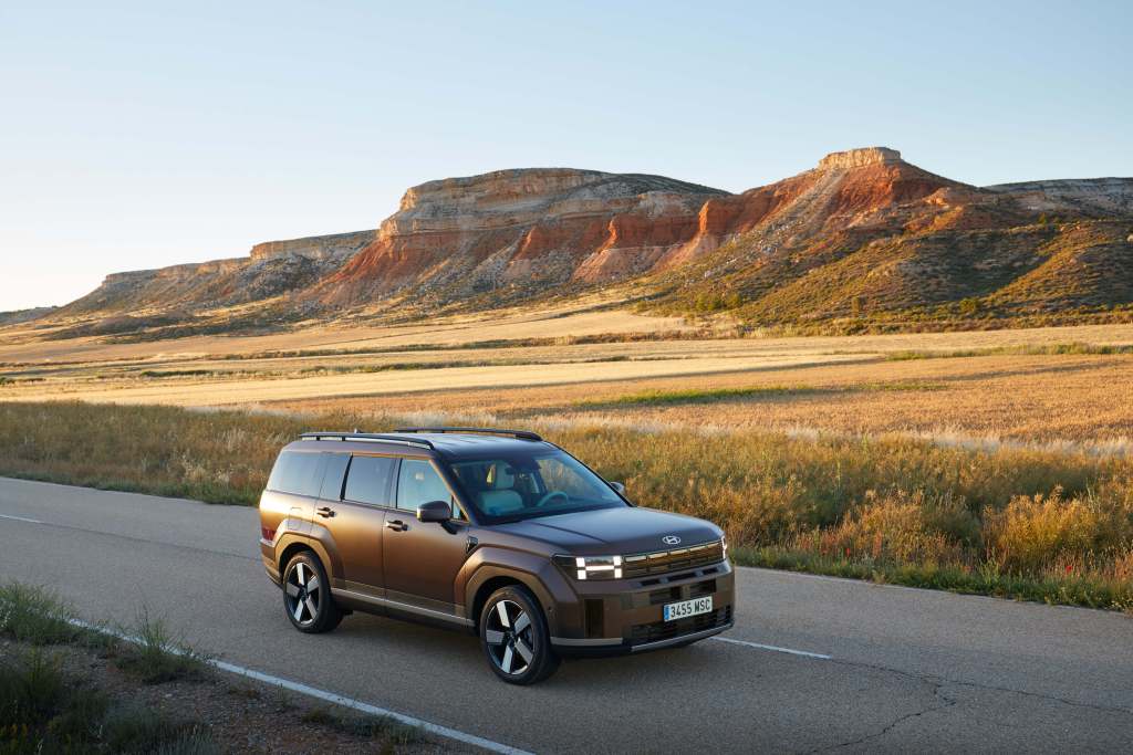 El diseño es espectacular y es su carta de presentación más llamativa gracias a un frontal muy alto y también cuadrado con grandes faros en H y señales lumínicas exclusivas y vistosas. La longitud de la carrocería apenas crece respecto al anterior Santa Fe, pero el incremento de la batalla es notable y eso hace que visualmente parezca mucho más grande, con voladizos más cortos y unas imponentes ruedas con llantas de aleación de hasta 20 pulgadas. El portón del maletero es también enorme, pero está bien diseñado y tiene mucho carácter en la nueva línea de diseño del Santa Fe. Es curioso que cada uno de los nuevos lanzamientos de Hyundai sigue una línea de diseño diferente entre sí. Las ópticas traseras también tienen forma de H y tanto la apertura como el cierre es eléctrico.