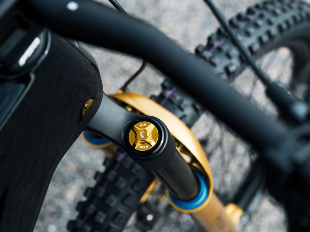 La suspensión neumática Öhlins RXF38 m.2 29 con 170 mm de recorrido (amortiguador delantero) y el TTX2Air con 160 mm de recorrido (amortiguador trasero) están ajustados específicamente para brindar a la bicicleta de montaña eléctrica una conducción emocionante y excelentes capacidades todoterreno, al igual que los SUV eléctricos de alto rendimiento de Polestar.