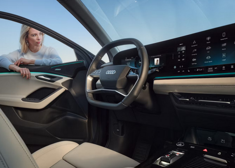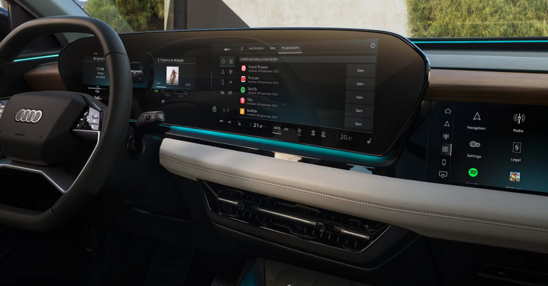 El diseño "human-centric" de Audi se nota en las líneas horizontales del salpicadero, que amplían visualmente el espacio. Se han utilizado materiales reciclados de alta gama como la microfibra Dinamica o la tapicería Kaskade, una muestra clara del compromiso de Audi con la sostenibilidad sin renunciar al lujo.