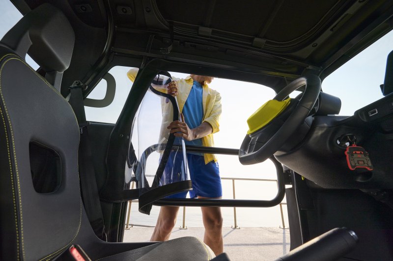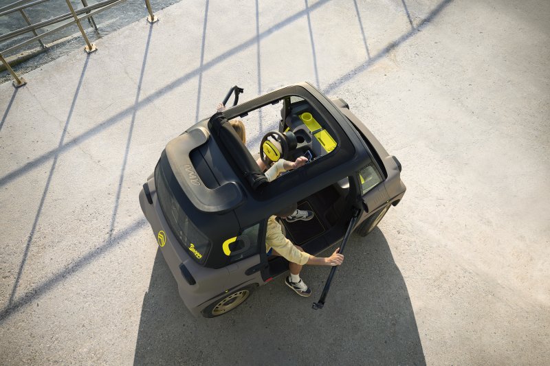 La estrella de esta renovación es el Ami Buggy, una variante pensada para el ocio y la aventura urbana. Sin puertas ni techo, ofrece una experiencia al aire libre en contacto directo con el entorno. Unos tubos metálicos sustituyen las puertas, y unas lonas con cremallera opcionales permiten protegerse del clima.