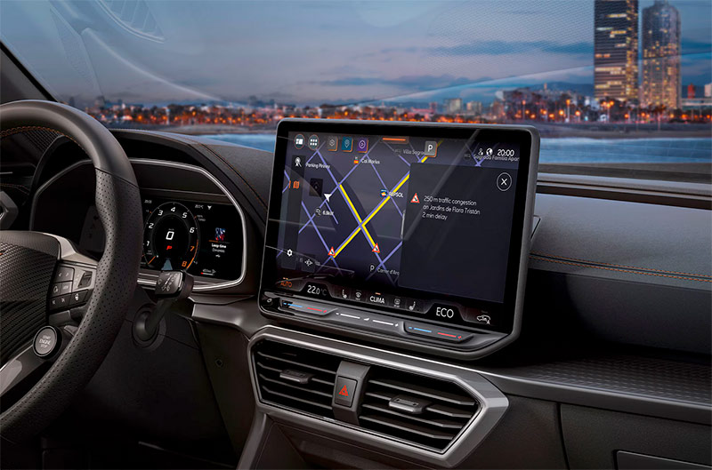 El interior del CUPRA Formentor e-HYBRID es un santuario de tecnología y confort, diseñado pensando en la comodidad de todos los ocupantes. Equipado con el CUPRA Digital Cockpit de 12,3 pulgadas y un sistema de infoentretenimiento con pantalla táctil de 12,9 pulgadas, la experiencia de conducción es completamente digital e intuitiva.