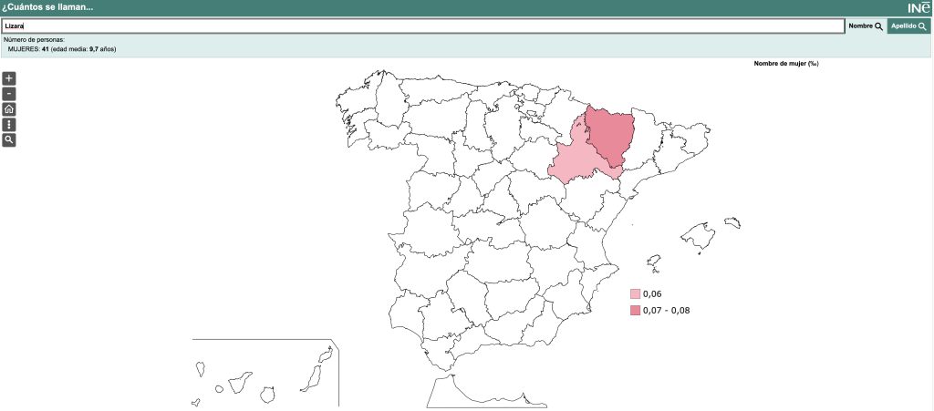Según los datos del Instituto Nacional de Estadística, en Aragón ya se encuentran registradas 41 niñas bajo el nombre Lizara, con una media de edad de 9,8 años, lo que refleja que es una tendencia reciente al alza. Su sonoridad suave y su significado vinculado a la naturaleza lo convierten en una opción atractiva para algunos padres que buscan un nombre original pero con profundas raíces locales.