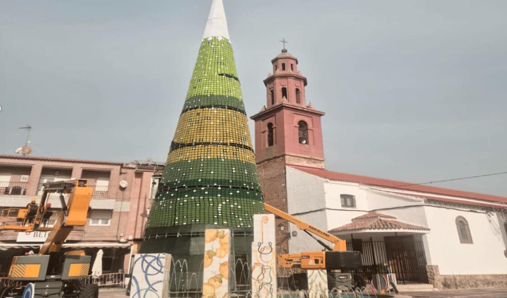 Montaje del árbol de navidad de Cazalegas, en Toledo. - Imagen: Ayto. Cazalegas
