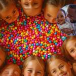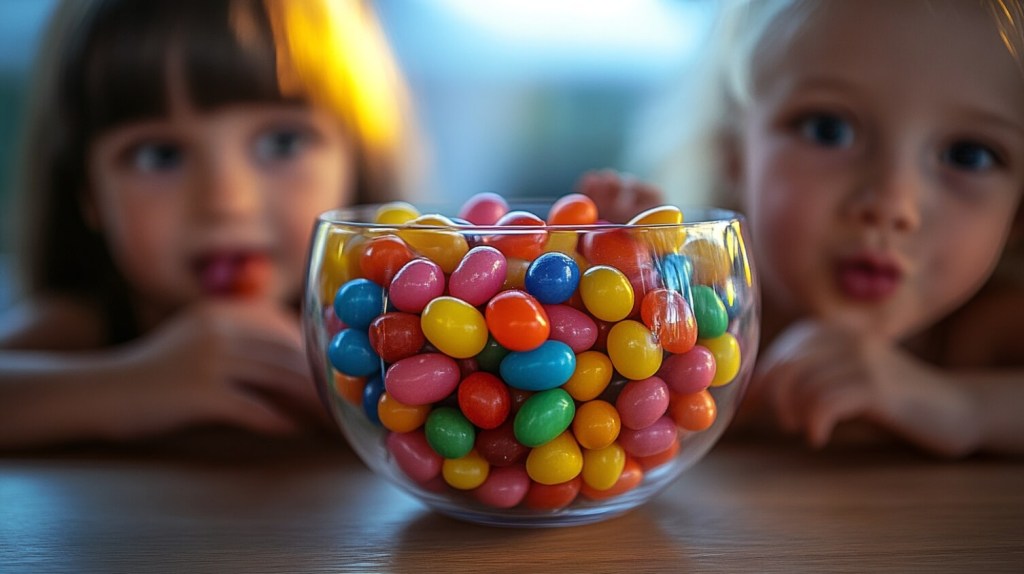 Dos niñas mirando un cuenco de caramelos de colores. - Imagen: PF