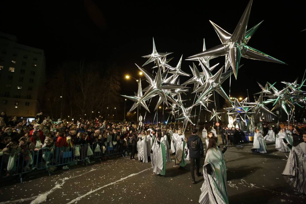 Junto a los tres Reyes Magos de Oriente y el resto de carrozas, completarán el espectáculo de la cabalgata de Reyes de Madrid, que este año lleva por título ‘La noche de los deseos cumplidos’, todo tipo de espectáculos callejeros, desde ángeles que vuelan a patinadores.