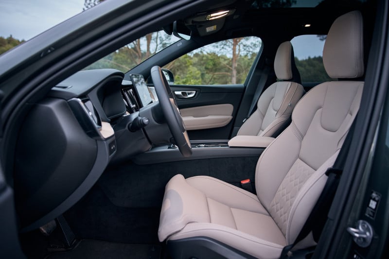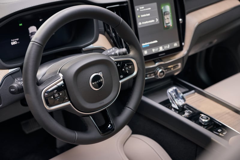 El XC60, por su parte, combina elegancia y atemporalidad. Su interior mezcla maderas, tejidos de origen responsable y materiales nobles en un equilibrio perfecto. Desde los portavasos hasta los nuevos compartimentos de carga, cada rincón ha sido pensado para optimizar el espacio y transmitir refinamiento.