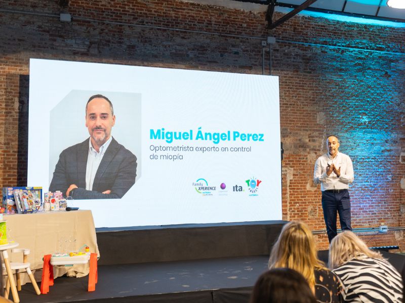 El primero en subir al escenario de Family Xperience + Toys Awards fue Miguel Ángel Pérez, optometrista y experto en control de la miopía de Coopervision. Su ponencia arrancó con humor y complicidad: “Voy a hablar de un tema que da más miedo que mirar las horas que pasamos frente al móvil”.