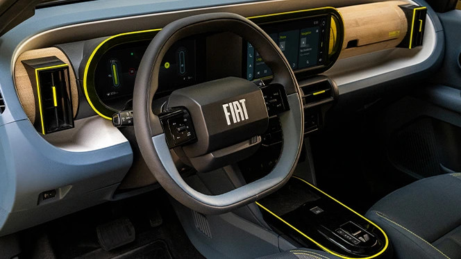 El interior se siente alegre, optimista, lleno de vida. Tonos como el azul Tasmania y detalles en amarillo iluminan el habitáculo. Y si quieres algo aún más especial, hay versiones que incorporan un textil natural de bambú en el salpicadero. Una textura cálida y orgánica que convierte cada trayecto en una experiencia sensorial.