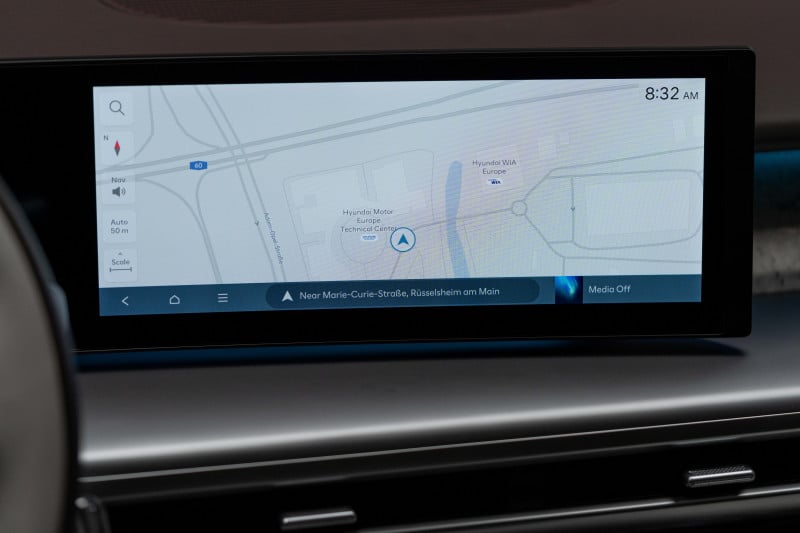 La pantalla curva panorámica doble de 12,3" reúne conducción, navegación y entretenimiento. Y por primera vez, Hyundai introduce un Asistente con IA integrada, basado en modelos como GPT-4o, que entiende comandos complejos y actúa como copiloto digital.