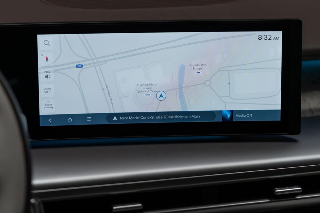 En el IONIQ 9, la tecnología no está para deslumbrar, sino para simplificar la vida cotidiana. Su interfaz digital de doble pantalla curva (12,3 pulgadas cada una) se conecta fácilmente con Apple CarPlay, Android Auto, Amazon Music y Soundcloud, permitiendo que cada viaje tenga su propia banda sonora.