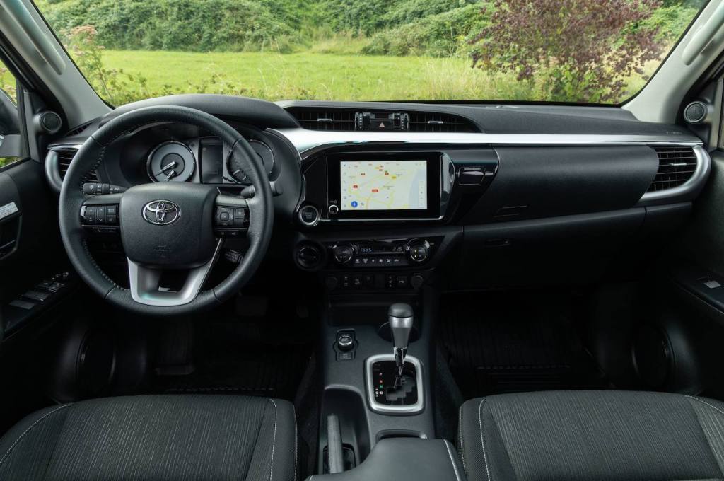 La Toyota Hilux Mild Hybrid 48V cuenta con unas llantas de aluminio de 18 pulgadas, cuatro modos de conducción —ECO, NORM, SPORT, MTS —, Sistema multimedia con pantalla de 8 pulgadas, compatibilidad Apple Carplay/Android Auto, asientos delanteros calefactables, espejos retrovisores ajustables y abatibles eléctricamente. También tiene sensores de aparcamiento delanteros y traseros, climatizador automático y luces antiniebla LED, lavafaros, dos tomas 12V y una toma 220V.