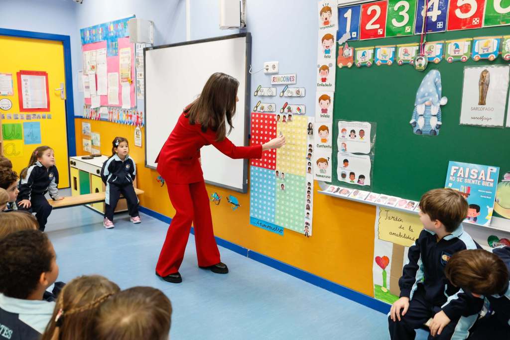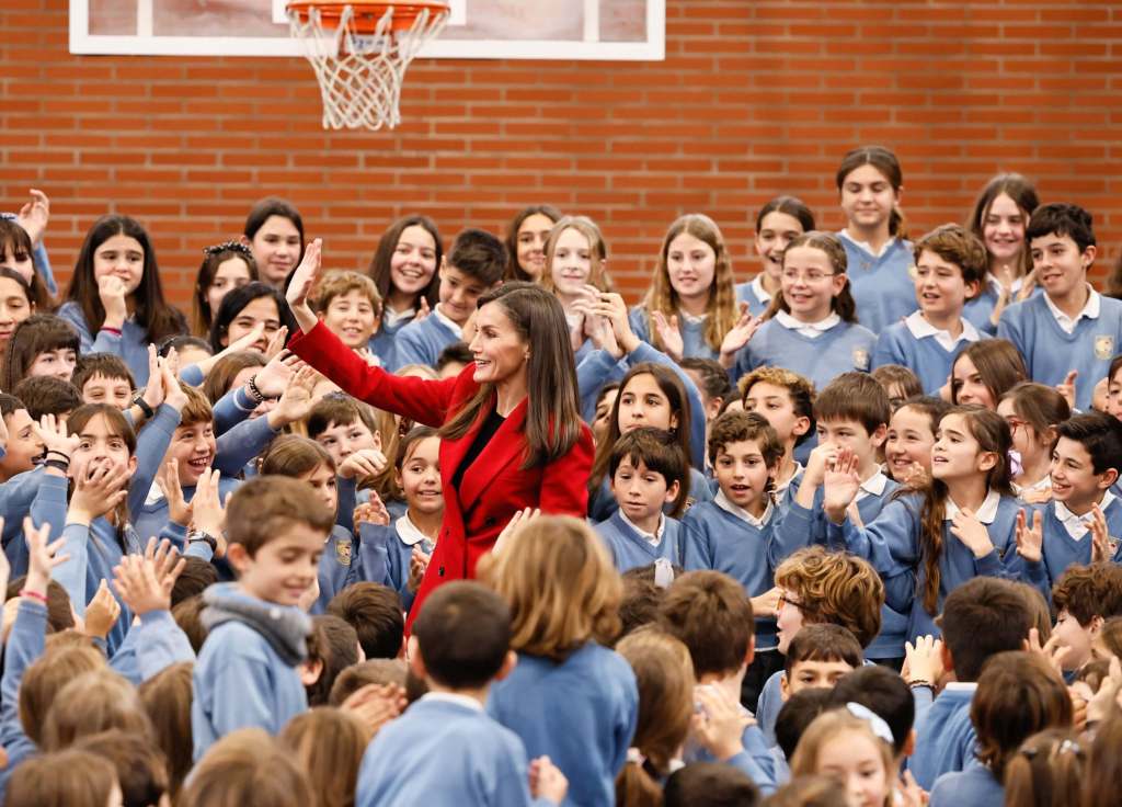 La reina Letizia ha visitado este colegio de la Comunidad de Madrid (Madrid capital) porque es un centro educativo que trabaja el proyecto ‘Think Equal’, proyecto pionero en educación socioemocional. La monarca ha tenido un encuentro con los docentes del centro. “La Reina ha compartido con profesores y alumnos los avances y logros alcanzados hasta el momento (con el proyecto ‘Think Equal’)”, ha asegurado Casa Real.