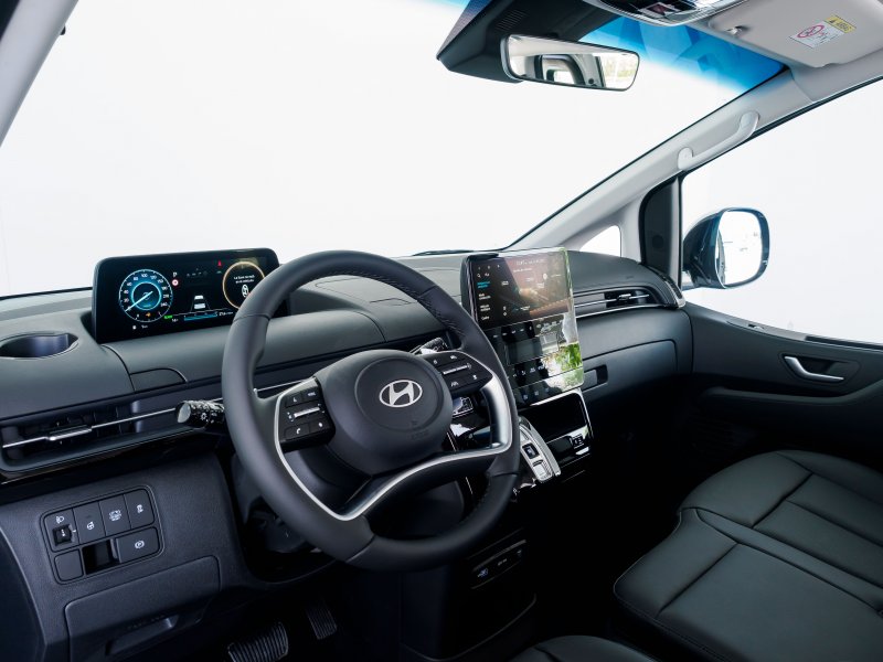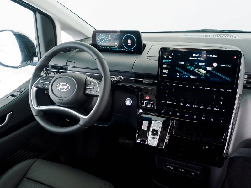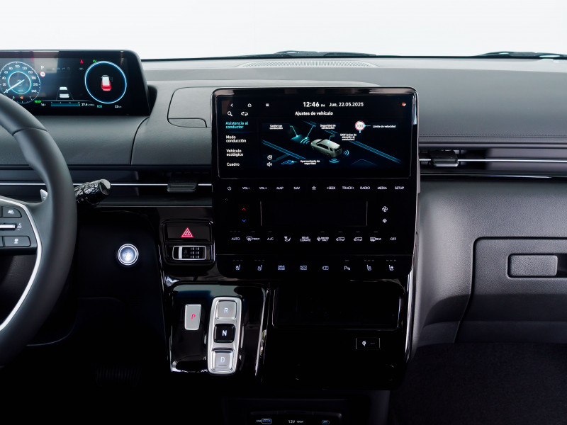 El Hyundai STARIA HEV Adaptado no solo destaca por su accesibilidad, sino también por integrar un ecosistema tecnológico pensado para el confort digital. Su interior está equipado con una pantalla táctil central de alta resolución que actúa como centro de control del vehículo, permitiendo gestionar desde la navegación hasta el sistema de climatización.