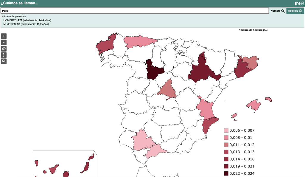 Actualmente, 229 hombres en España llevan este nombre, con una media de edad de 24,4 años, y 96 mujeres con una edad media de 11,7 años. Lo que refleja cómo esta tendencia ha venido consolidándose en las últimas dos décadas. Por provincias, los datos muestran que Zaragoza, Barcelona y Valladolid son las zonas donde más común resulta este nombre. Esta distribución podría deberse a una combinación de factores culturales y sociales propios de estas regiones, donde la influencia de nombres con raíces internacionales parece ser más marcada.