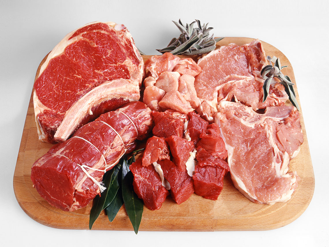 La carne de ternera, de cordero y otras carnes rojas son muy ricas en hierro, tienen en promedio unos 3 mg de hierro por cada 100 gramos.