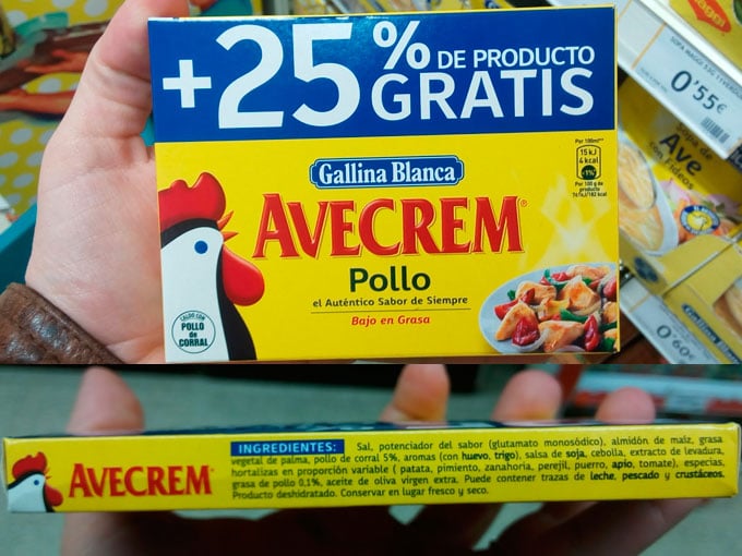 Avecrem, caldo de pollo, está compuesto, entre otros ingredientes, por grasa vegetal de palma.