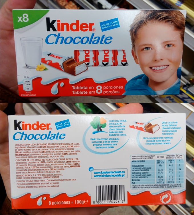 Las barritas Kinder chocolate están fabricadas, entre otros ingredientes, con manteca de palma.