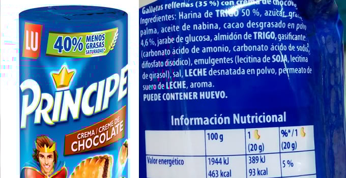 Las galletas Príncipe de Lu tienen aceite de palma.