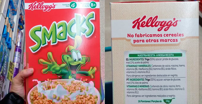 Los Smacks de Kellogg's tiene 4 ingredientes y uno de ellos es el aceite de palma.