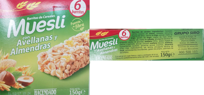 Barritas de cereales muesli de Hacendado