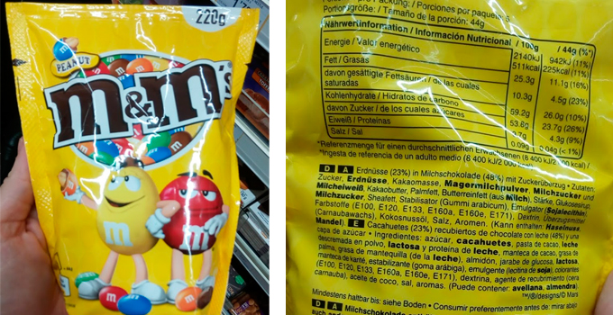 Uno de los ingredientes de cacahuetes M&M es el aceite de palma.