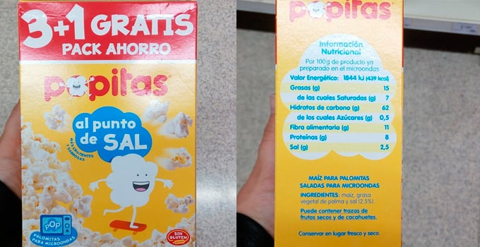 Las palomitas Popitas llevan entre sus ingredientes aceite de palma.