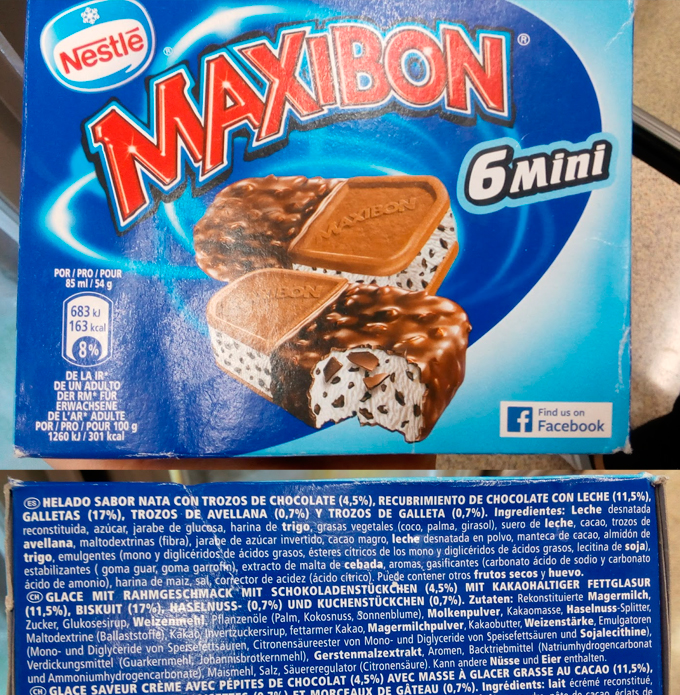 Los helados Maxibon de Nestlè tienen entre su composición está el aceite de palma.