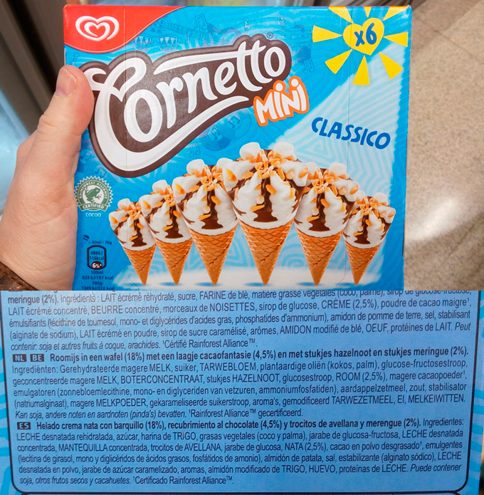 Los helados Cornetto Mini de Frigo se elaboran con aceite vegetal como el coco y el de palma.