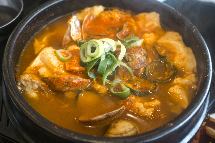 6. Enjuaga las almejas y agrégales a la cazuela. Cocina hasta que las almejas se abran, lo que debería llevar unos 5-7 minutos.
