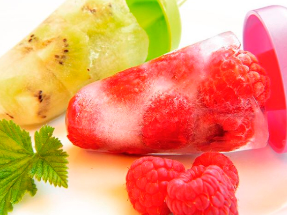 Una idea para merendar que les encantará es un polo hecho en casa. Os pueden ayudar a hacerlos. Solo necesitáis fruta recién pelada y agua o zumo natural de naranja o la propia fruta exprimida.
