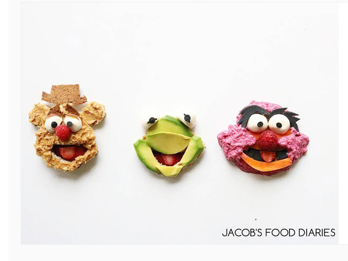 - Crema de cacahuete mezclada con alguna fruta en tonos rosados (cerezas, ciruelas, fresas, etc.).