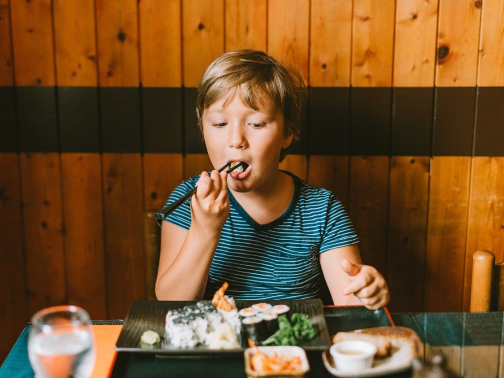 Aunque el niño consuma pescado, en el caso del sushi es particularmente aconsejable evitar el pescado y marisco crudos, por lo que sería más recomendable optar por tempura o, bien, por aquellas preparaciones que incluyan pescado cocido o empanado.