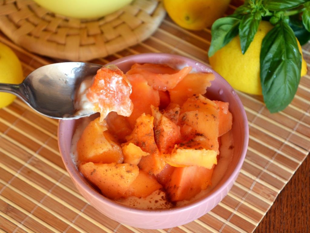 Deliciosamente digestivo, el yogur con papaya puede llegar a convertirse en una opción excelente para el desayuno o la merienda de los niños. Es más, cuando el niño es un poco más grande, es posible espolvorear por encima un poco de canela molida. El resultado es todavía más exquisito.