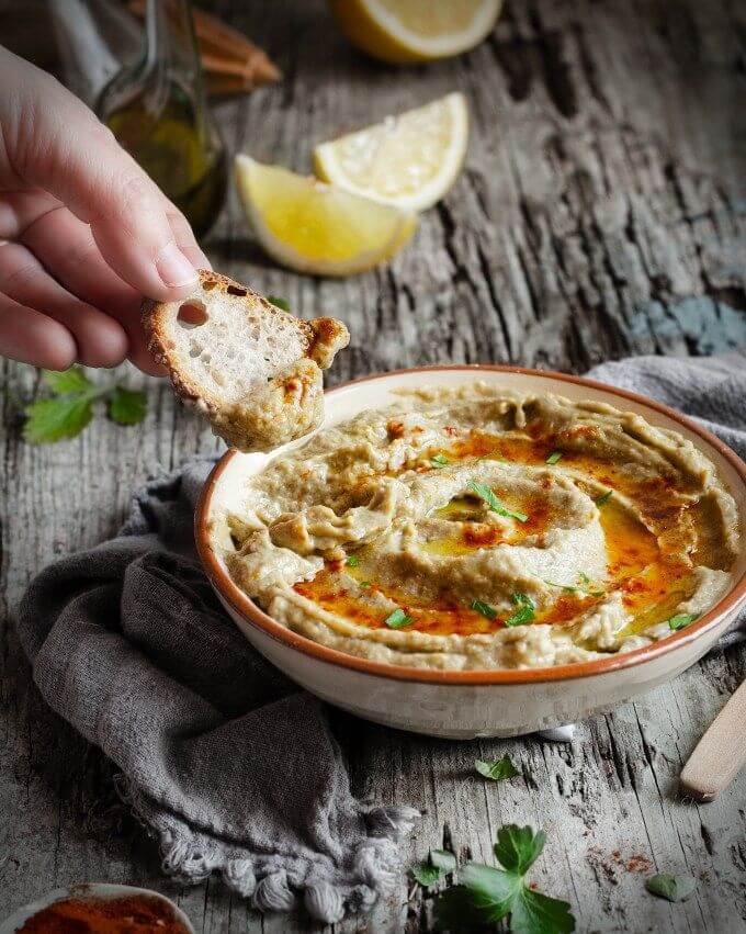 Una de las recetas más tradicionales es el Baba Ganoush, una crema de berenjena típica de la cocina árabe. Para prepararla necesitaremos berenjenas, tahini, ajo, jugo de limón y aceite de oliva.