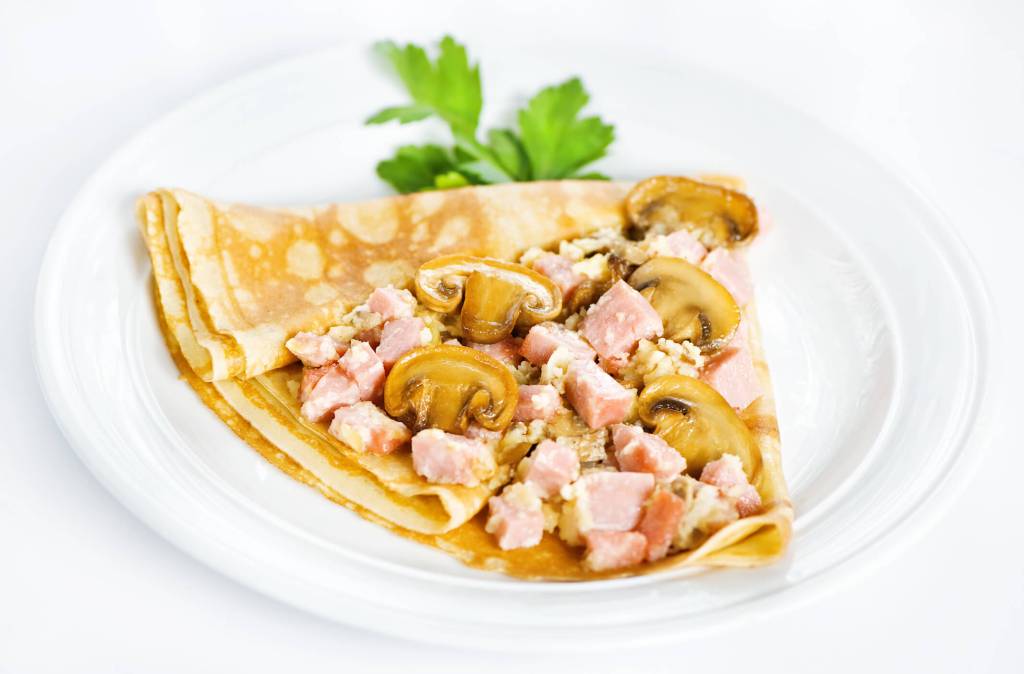 2. Crepes saladas de setas, jamón y bechamel