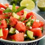 - Corta el queso feta en cubos e incorpora a la ensalada junto con las olivas.