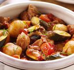 5. Dejar que cueza todo junto a fuego lento, hasta que la carne y las verduras estén tiernas, sin que se pasen. Si el guiso se seca un poco durante la cocción, se puede agregar un chorrito de vino y otro de agua.