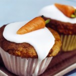 8.Dejar enfriar, poner la cobertura por encima y decorar con gominolas en forma de zanahoria para dar vida a este cupcake.