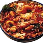 6. Agregar las colas de las gambas y los filetes de rape troceados. Dejar hacer a fuego lento para que el caldo se reduzca y espese.